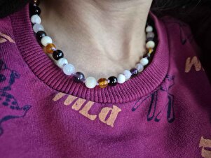 Sertifikalı Kehribar-ametist-pembe Kuvars-havlit-kalsit-dumanlı Kuvars-doğal Taş Kolye Sertifikalı Kehribar-ametist-pembe Kuvars-havlit-kalsit-dumanlı Kuvars-doğal Taş Kolye dtk01000 33-35