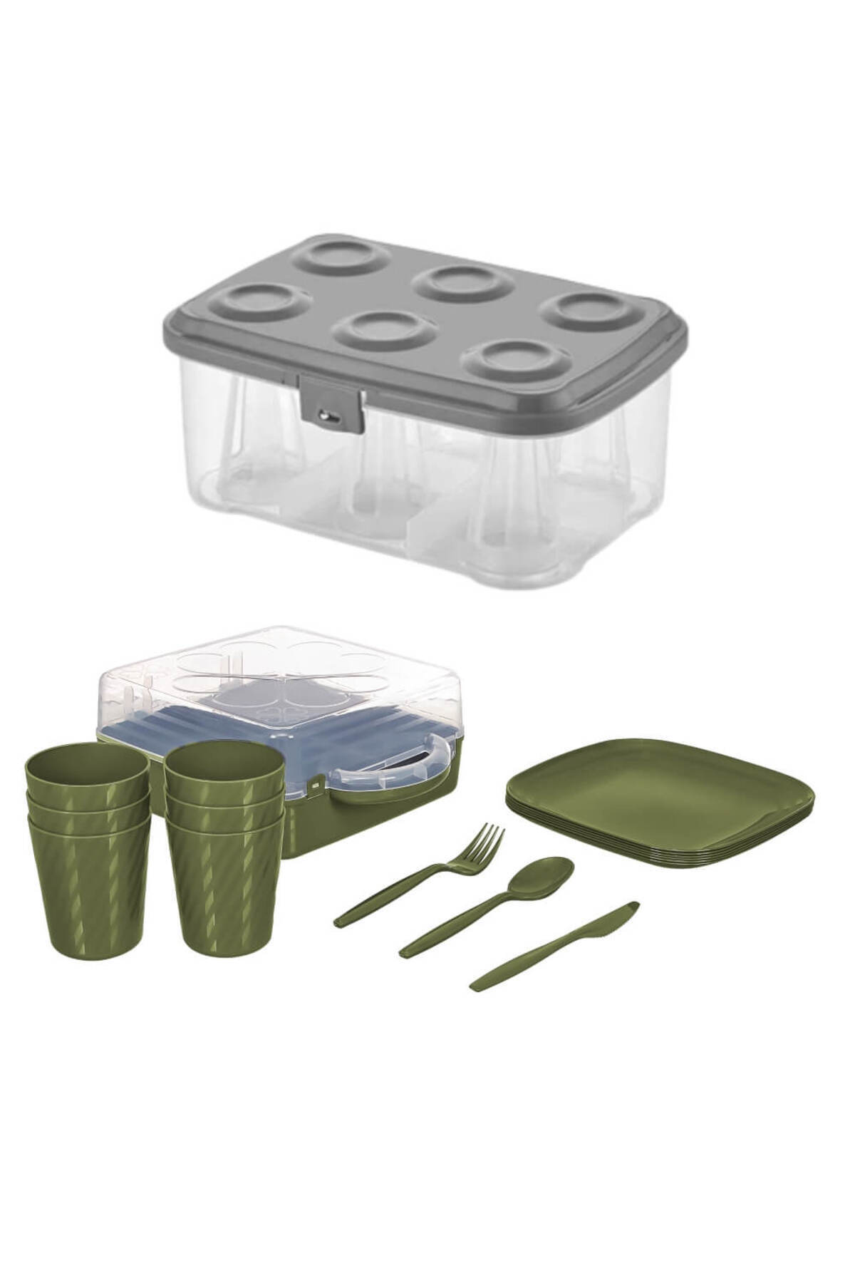 مشخصات فنی Urve 6 Kişilik Kamp Seyahat Piknik Seti Ve Çay Bardak Taşıma Aparatı Kabı 2 Si 1 Arada Yeşil جنس پلاستیک چند تیکه 3 رنگ نارنجی مشخصات کلی