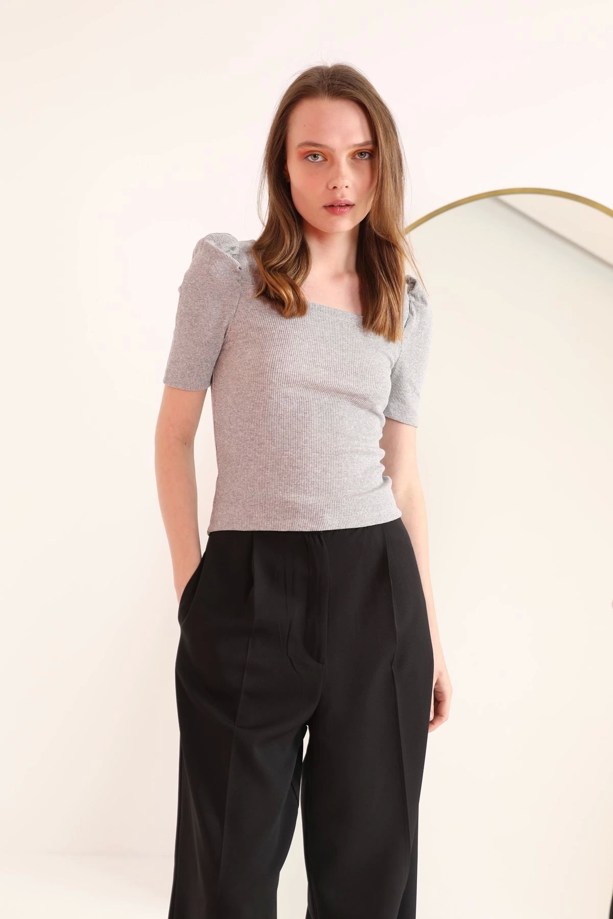 Triko Kumaş Karpuz Kol Kadın Bluz-yeşil Triko Kumaş Karpuz Kol Kadın Bluz-yeşil 23TS006 Standart