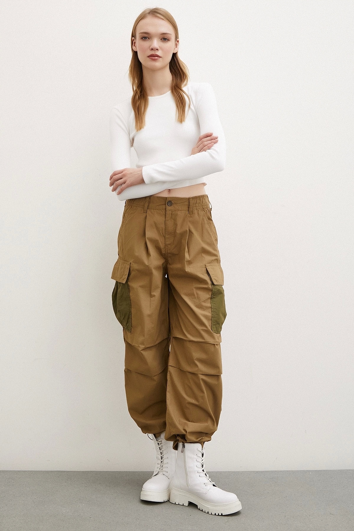 Kadın Paraşüt Kumaş Lastikli Bel Pantolon Kadın Paraşüt Kumaş Lastikli Bel Pantolon vl-pklbp34 L