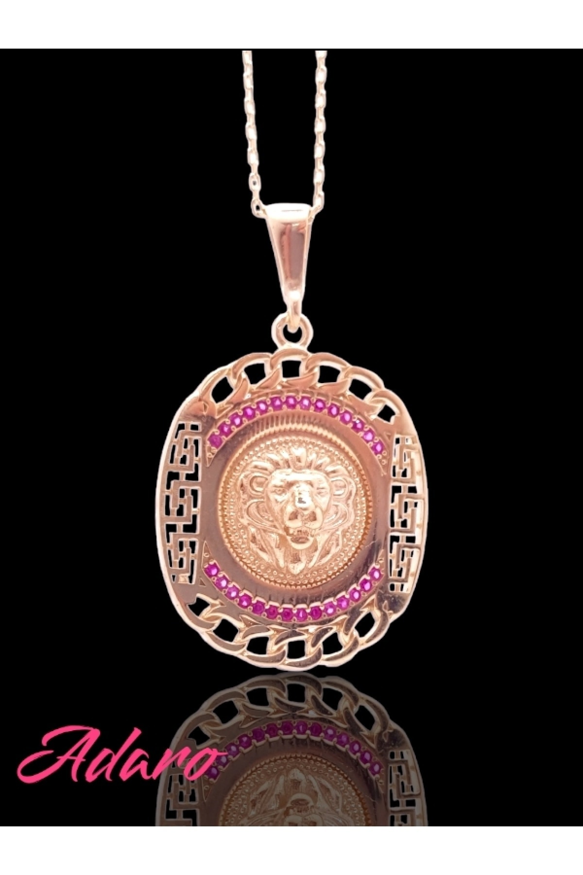 925 Ayar Gümüş Aslan Figürlü Madalyon Kolye 925 Ayar Gümüş Aslan Figürlü Madalyon Kolye ADARO7655 55 cm