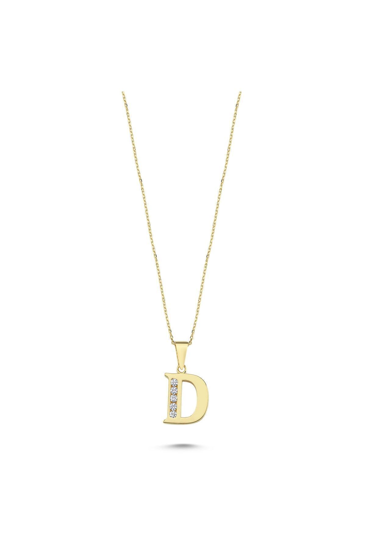 925 Ayar Gümüş Altın Kaplama Taşlı Harfli Kolye - K Harfi - Standart 925 Ayar Gümüş Altın Kaplama Taşlı Harfli Kolye - K Harfi - Standart ADA0003 Standart