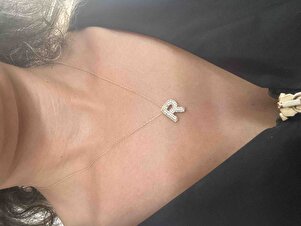 925 Ayar Gümüş Altın Kaplama Taşlı Harfli Kolye - R Harfi - Standart 925 Ayar Gümüş Altın Kaplama Taşlı Harfli Kolye - R Harfi - Standart ADA0003 تک سایز