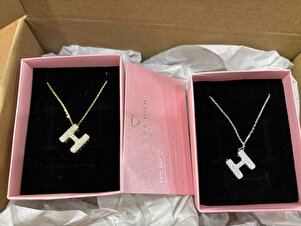 925 Ayar Gümüş Altın Kaplama Taşlı Harfli Kolye - H Harfi - Standart 925 Ayar Gümüş Altın Kaplama Taşlı Harfli Kolye - H Harfi - Standart ADA0003 تک سایز