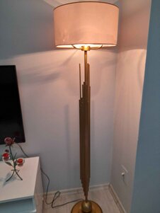 Marche Eskitme Mat Gold Kaplama Metal Lambader - Çuval Bez Efektli Marche Eskitme Mat Gold Kaplama Metal Lambader - Çuval Bez Efektli MRCLMDE02