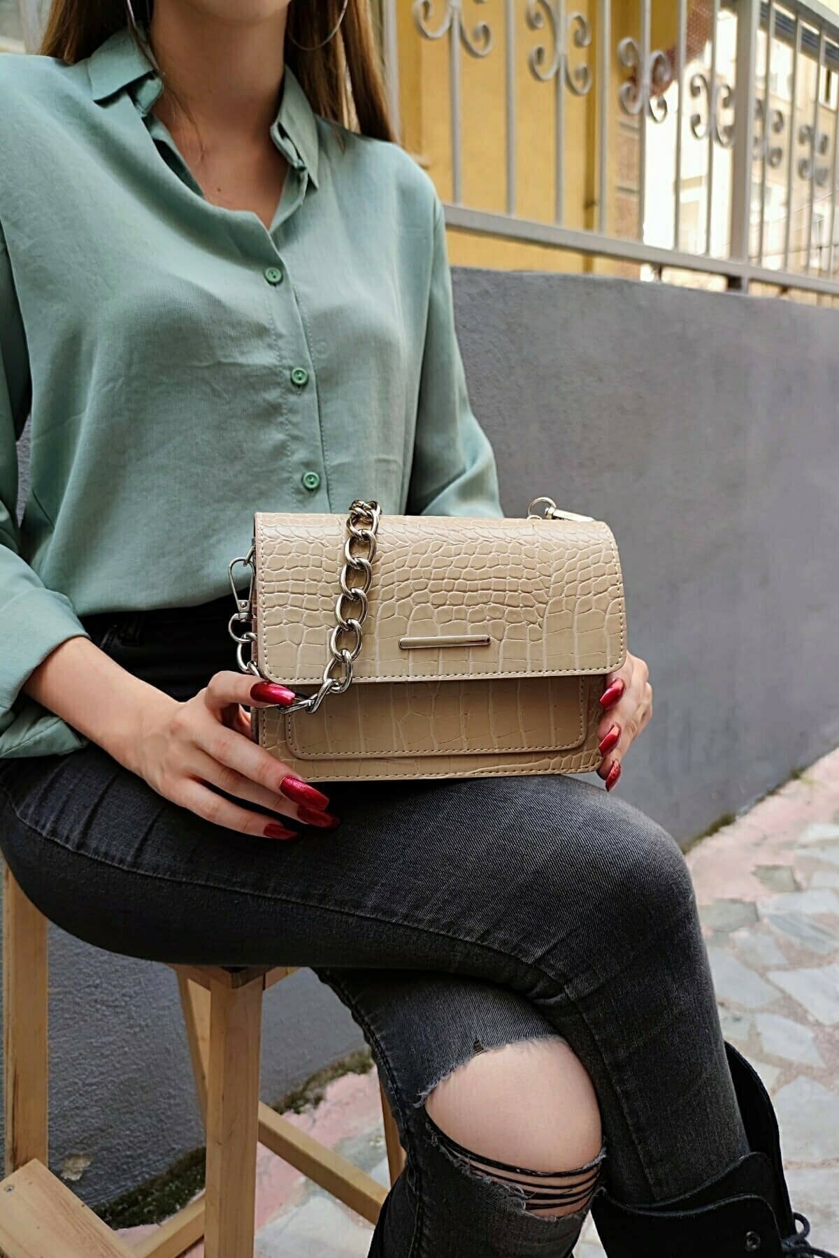 Kadın Bej Plastik Zincir Omuz Çantası Kadın Bej Plastik Zincir Omuz Çantası DAY-322312 تک سایز
