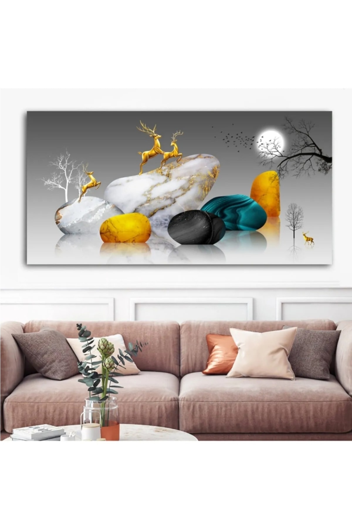 Turkuaz Desenli Altın Geyik Tasarım Kanvas Tablo Dr0113 Turkuaz Desenli Altın Geyik Tasarım Kanvas Tablo Dr0113 ART51236 75 x 150