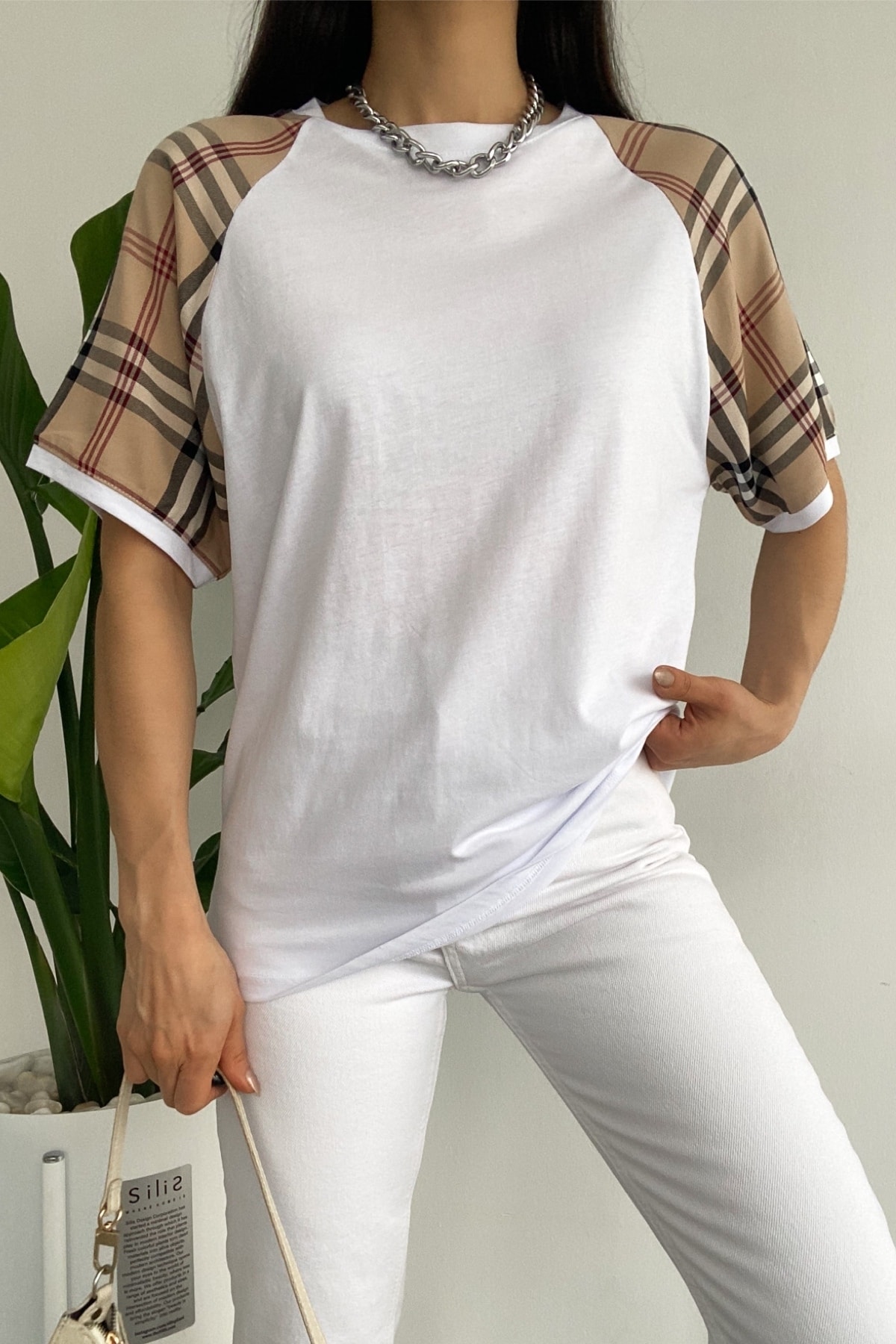 Kadın Siyah Kolu Fisto Brode Detaylı Pamuk Tişört Kadın Siyah Kolu Fisto Brode Detaylı Pamuk Tişört A012 L