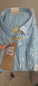 Erkek Mavi Comfort Fit Rahat Kesim Düğmeli Yaka Pamuklu Çizgili Kısa Kollu Gömlek Erkek Mavi Comfort Fit Rahat Kesim Düğmeli Yaka Pamuklu Çizgili Kısa Kollu Gömlek 4A2023200250 3XL