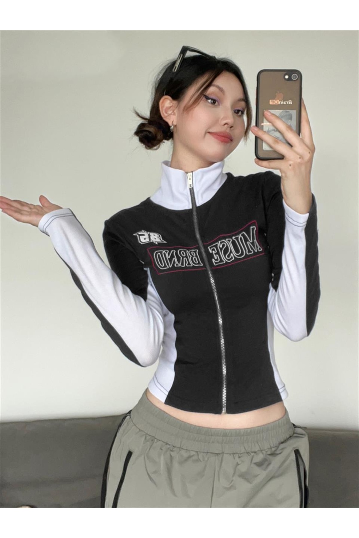 Eylm Rock More 85 Baskılı Fermuarlı Siyah Crop Eylm Rock More 85 Baskılı Fermuarlı Siyah Crop TZ4597 M