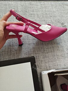 Kadın Topuklu Ayakkabı Arkası Açık Direkli Tokalı Topuk 9 cm Kadın Topuklu Ayakkabı Arkası Açık Direkli Tokalı Topuk 9 cm 11223344 40
