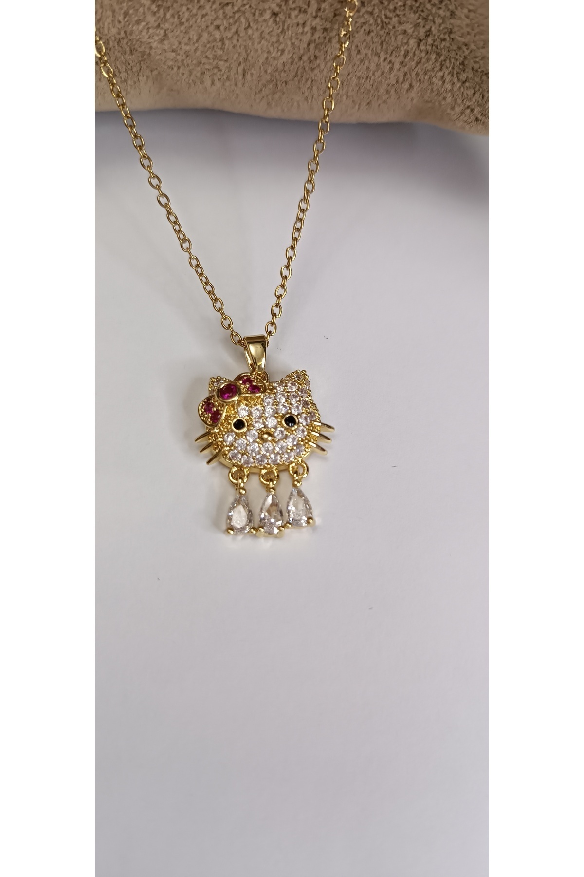 Kedi Zirkon Pembe Taşlı Parlak Kolye Kedi Zirkon Pembe Taşlı Parlak Kolye 485465151 45 cm