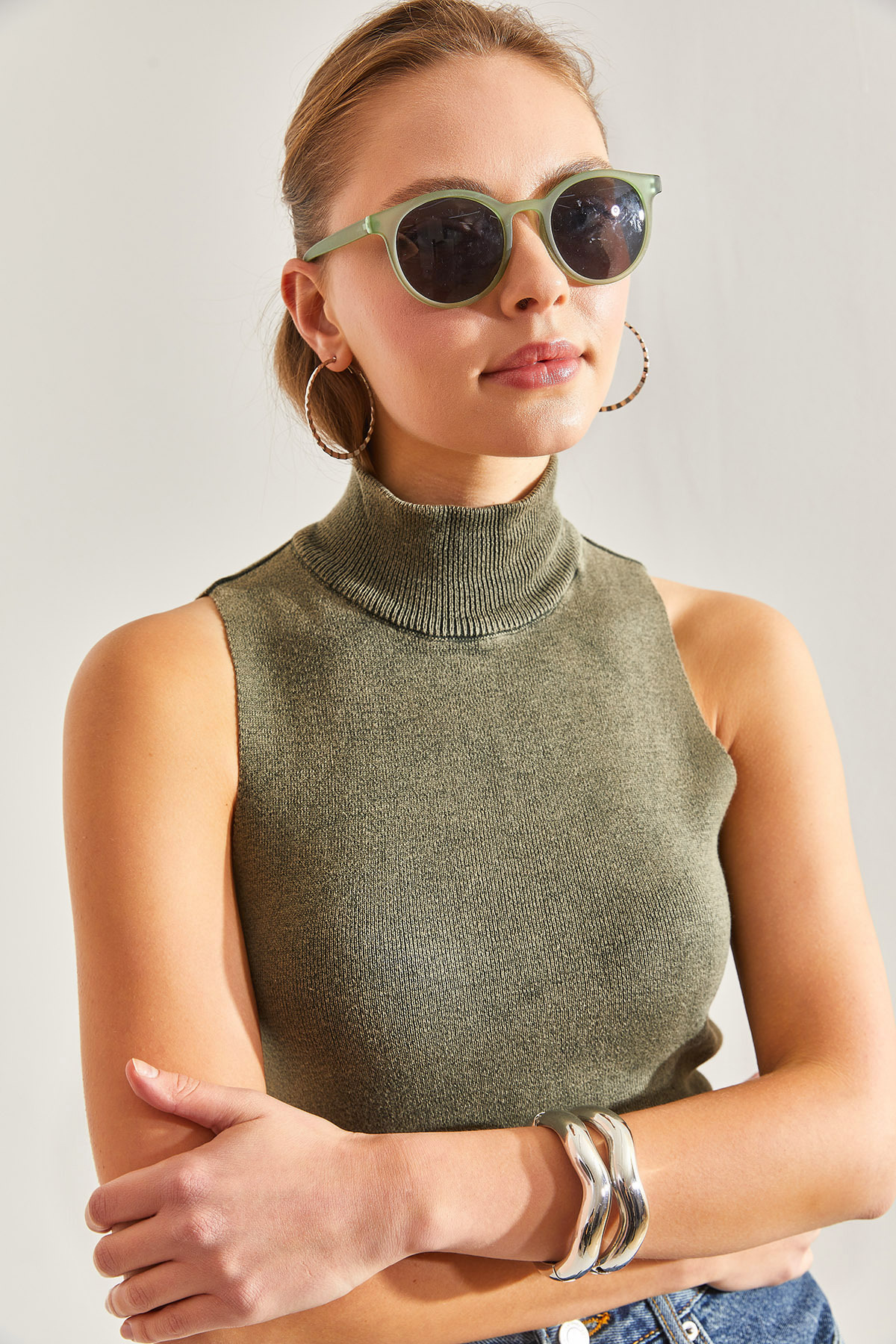 Kadın Bisiklet Yaka Kolsuz Yanları Yırtmaçlı Açık Örgü Bluz Kadın Bisiklet Yaka Kolsuz Yanları Yırtmaçlı Açık Örgü Bluz 20234100 Standart