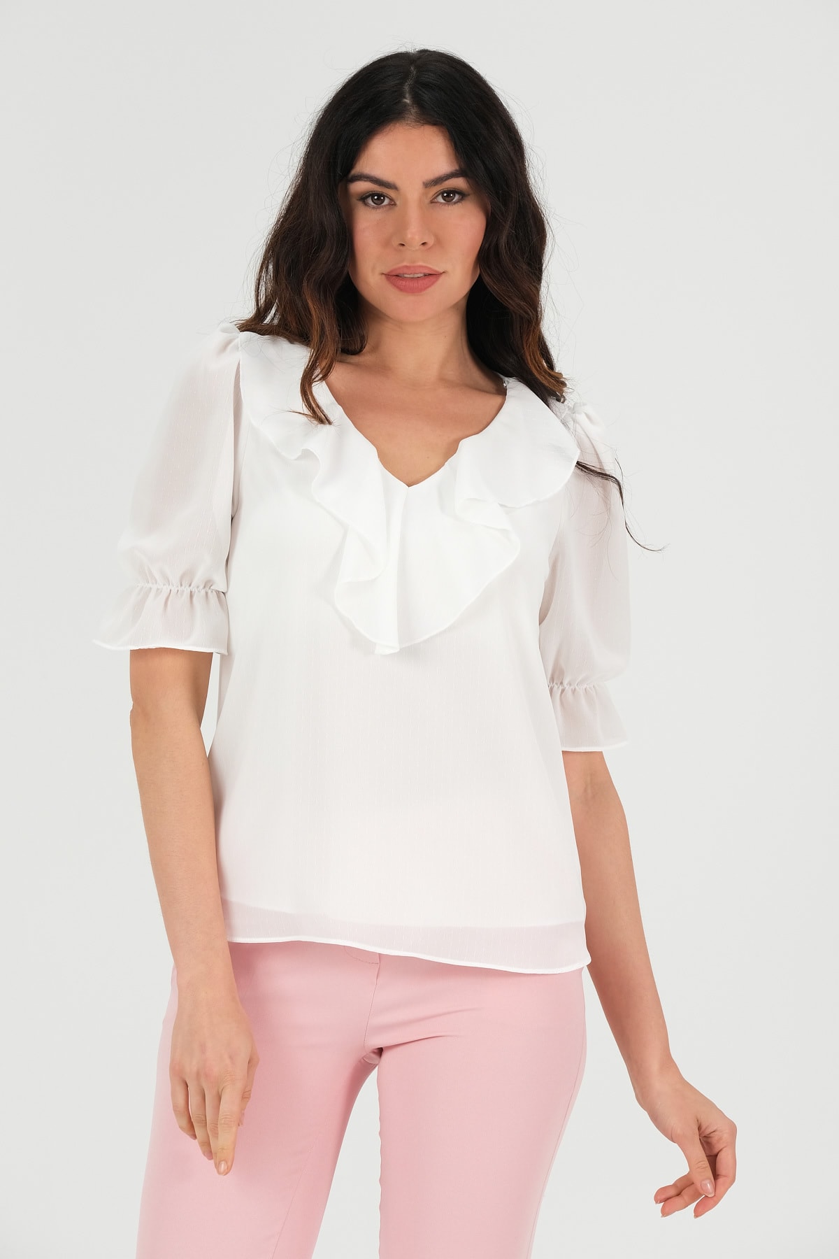 Büyük Beden Fiyonk Yakalı Saten Bluz Büyük Beden Fiyonk Yakalı Saten Bluz SHQ-60639 50
