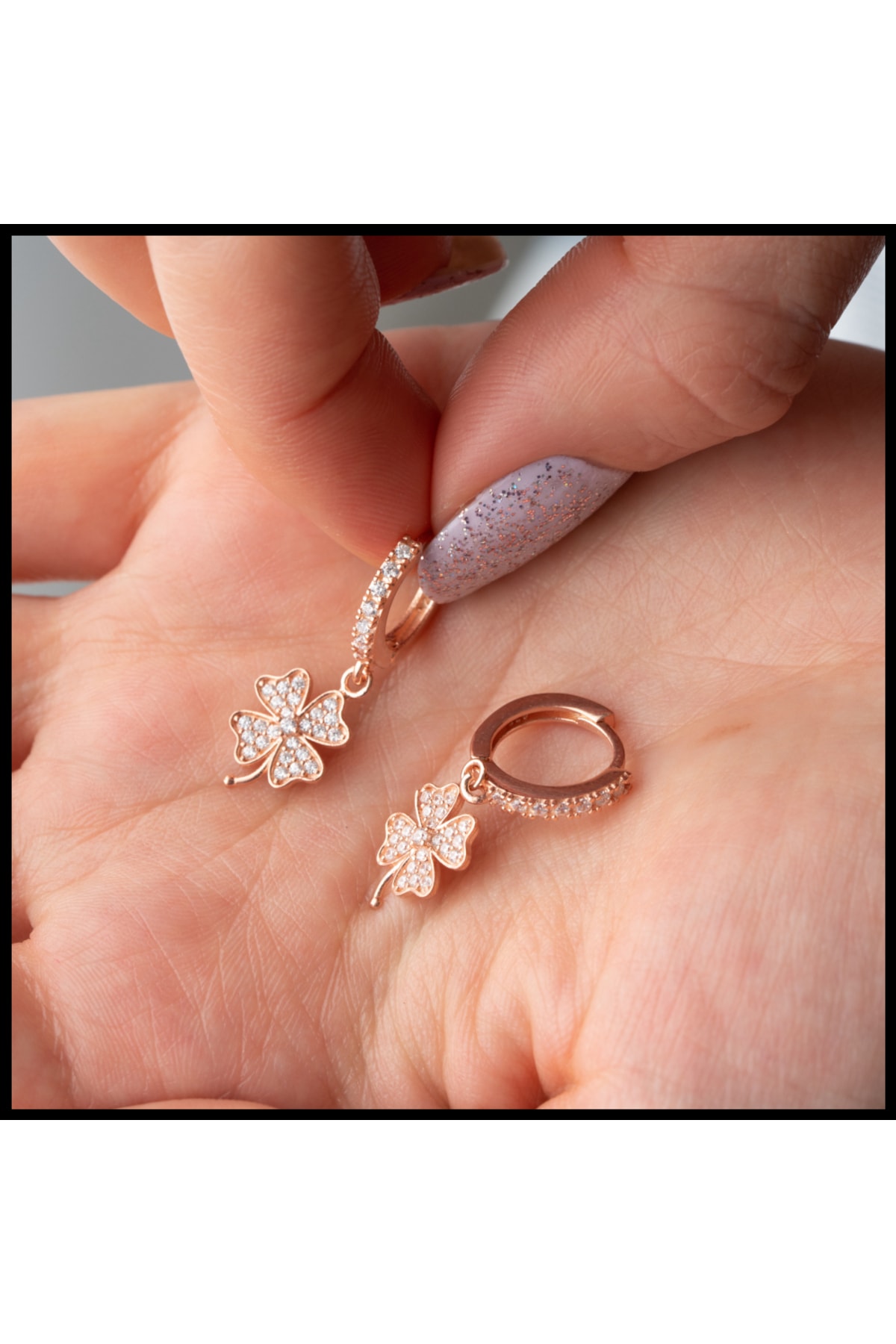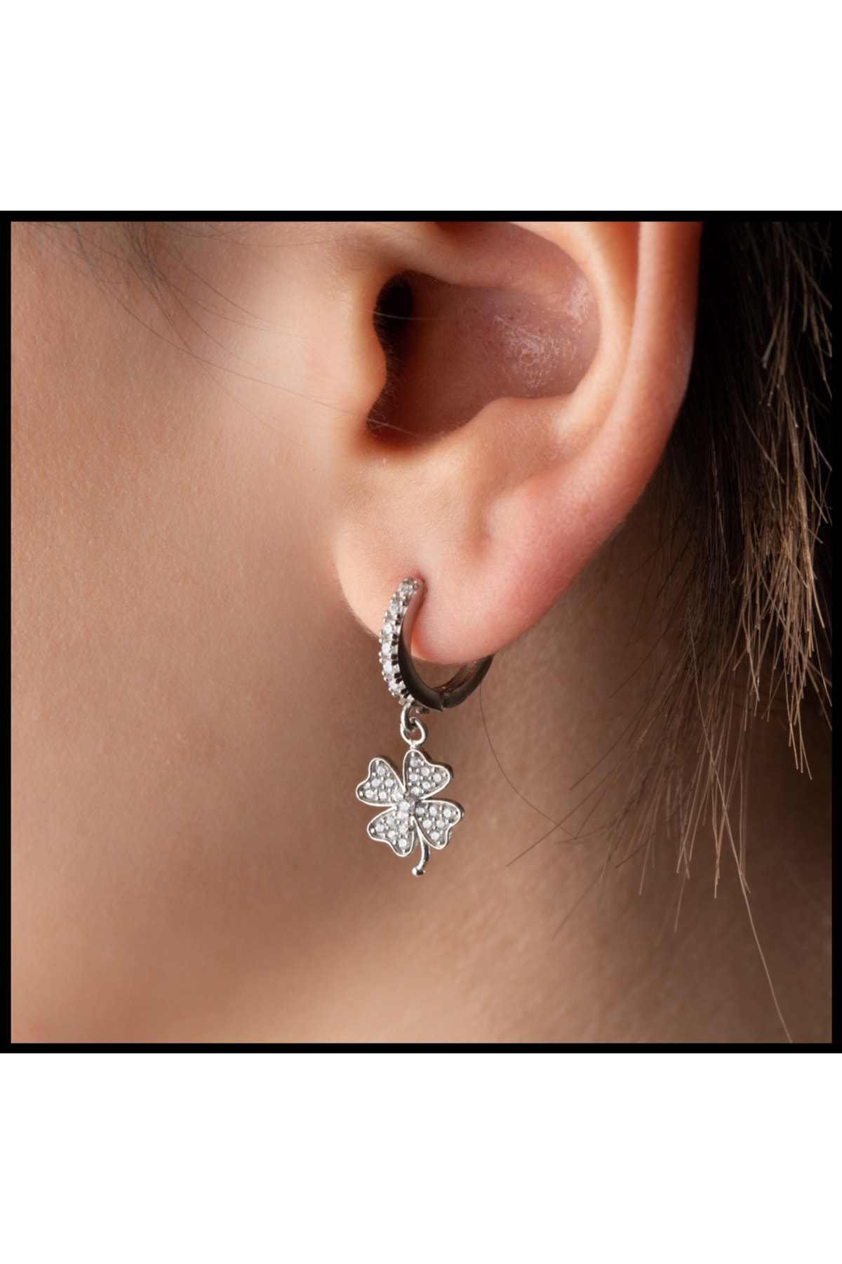 925 Ayar Gümüş Taşlı Yonca Küpe - Gold 925 Ayar Gümüş Taşlı Yonca Küpe - Gold ST-95 M