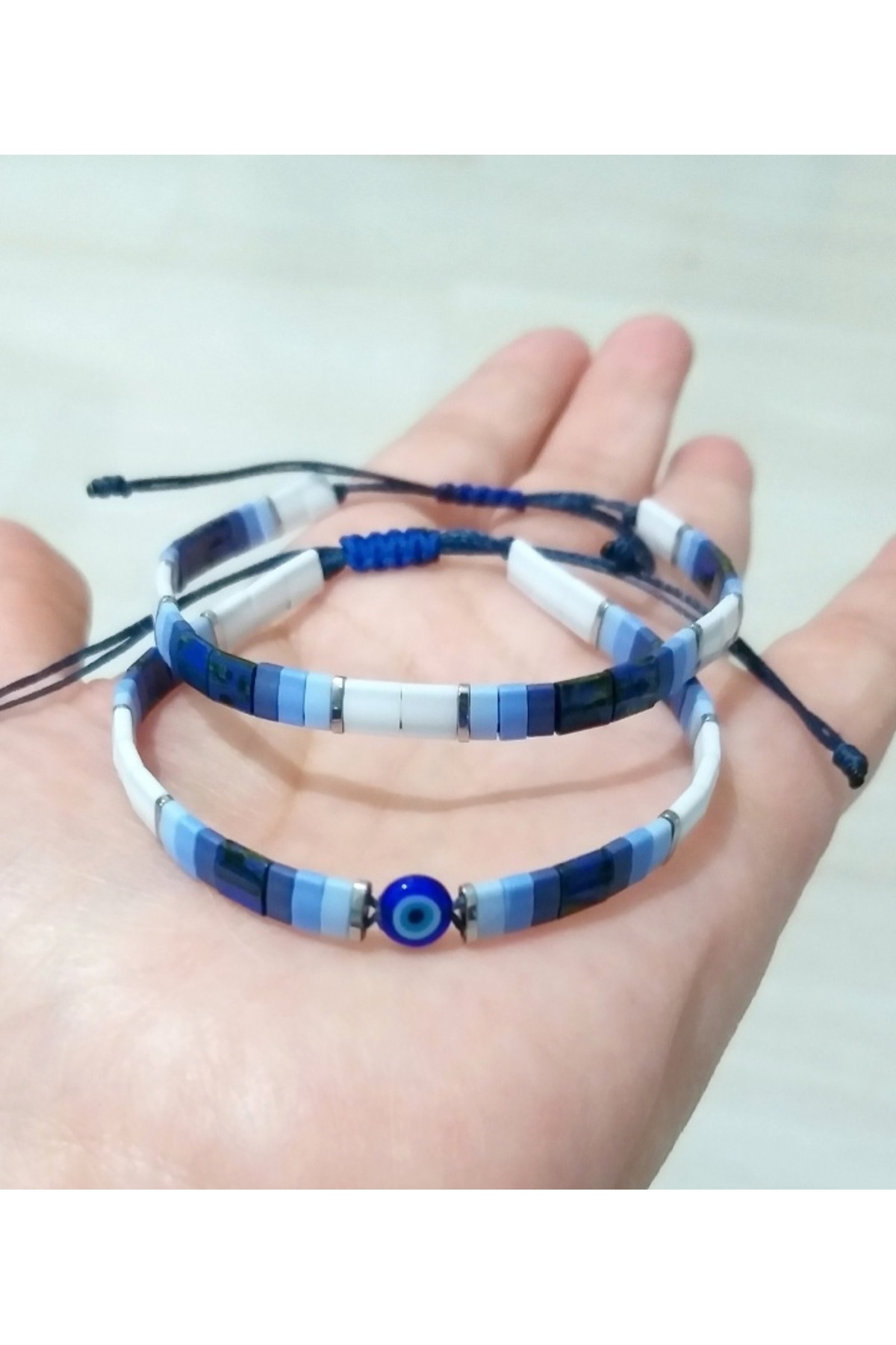 Cam Nazar Boncuklu Sedef Mavi Doğaltaş Bileklik Cam Nazar Boncuklu Sedef Mavi Doğaltaş Bileklik Blky458 تک سایز