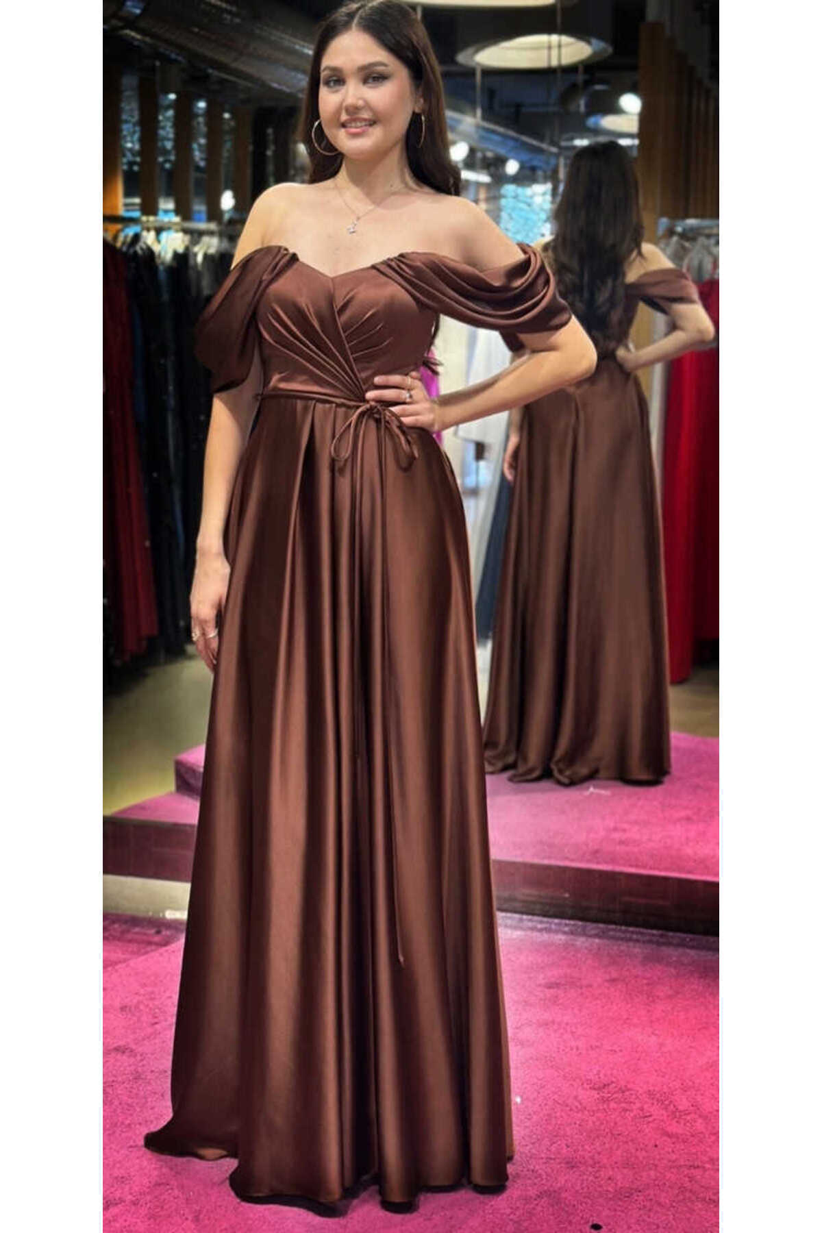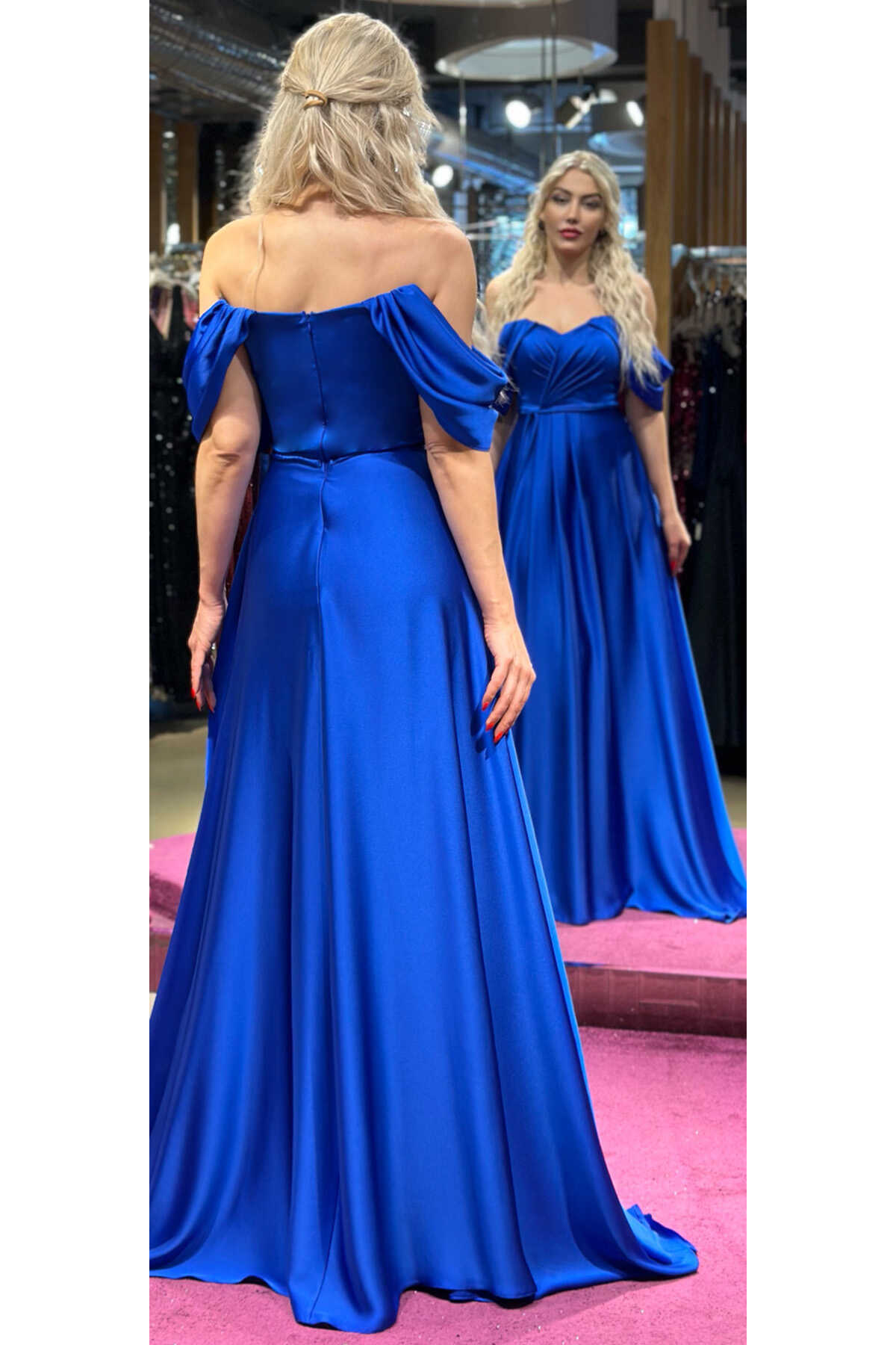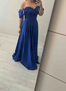 Saks Kloş Etekli Saten Uzun Abiye Elbise 7350 Saks Kloş Etekli Saten Uzun Abiye Elbise 7350 46