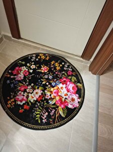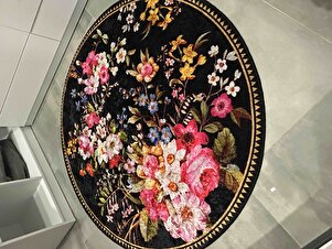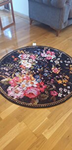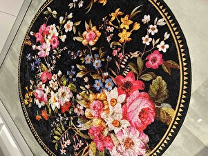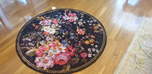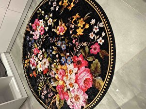 Çiçek Desenli Dekoratif Deri Taban Yuvarlak Halı - Siyah Çiçek Desenli Dekoratif Deri Taban Yuvarlak Halı - Siyah BYD_ASTON 150 x 150
