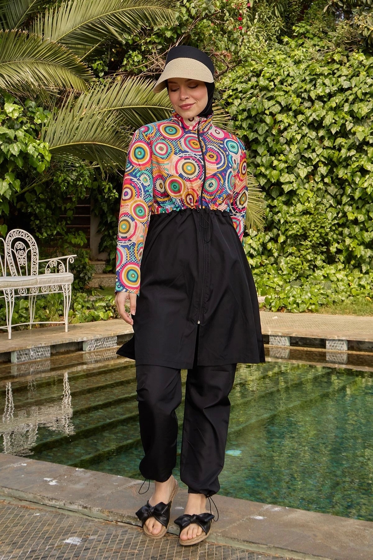 Tesettür Mayo Siyah Hızlı Kuruyan Yeşil Yapraklı Tesettür Mayo Siyah Hızlı Kuruyan Yeşil Yapraklı TD223/418 46