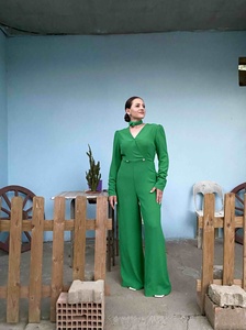 Kruvaze Süs Taşlı Krep Tulum - Yeşil Kruvaze Süs Taşlı Krep Tulum - Yeşil STN139KTU849 42