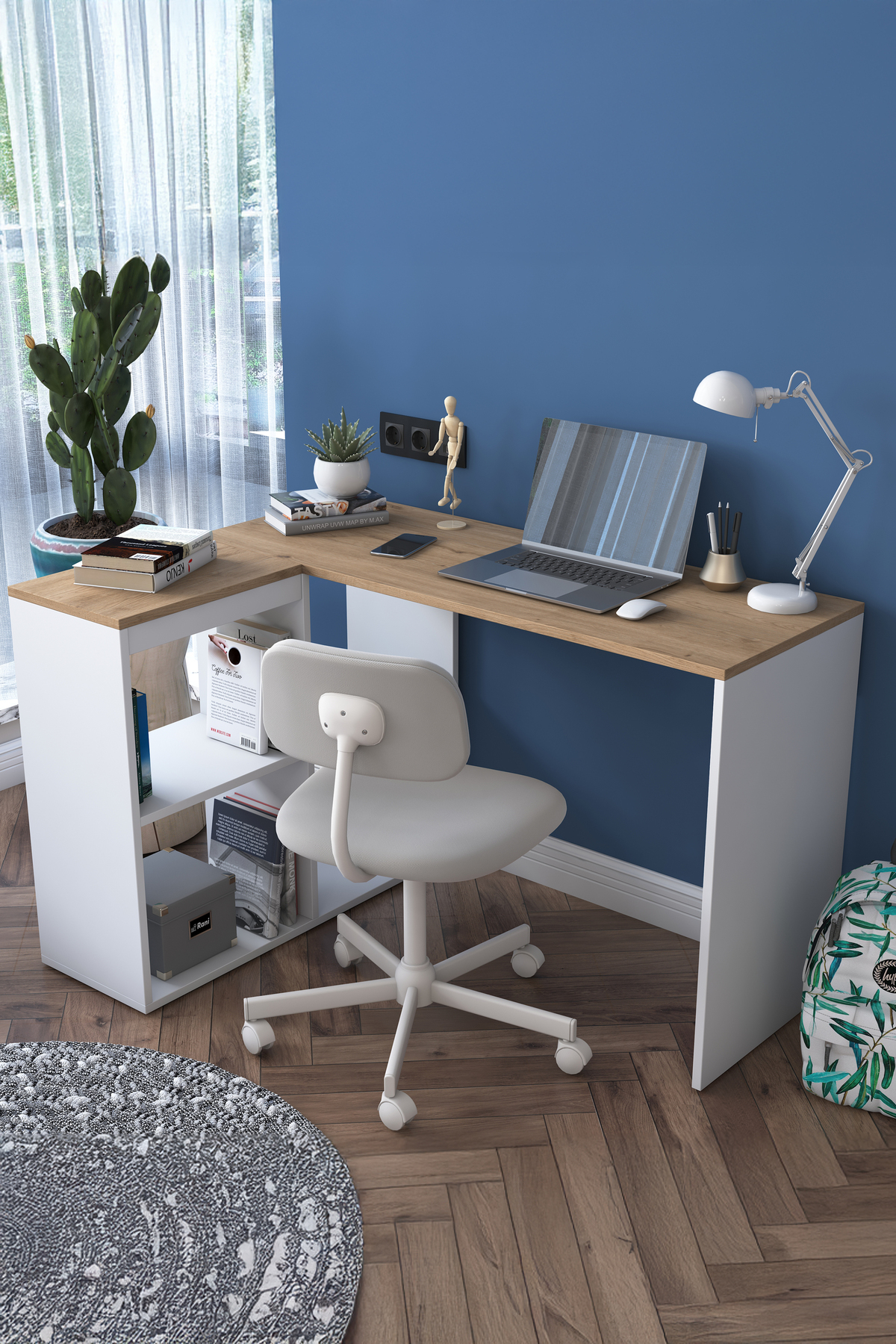 Tywin Kitaplık Raflı Çalışma Masası Çam-Beyaz Tywin Kitaplık Raflı Çalışma Masası Çam-Beyaz CT5-AW تک سایز