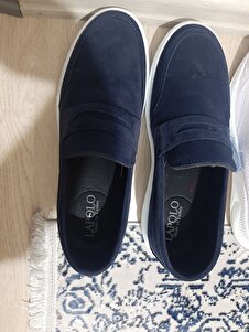 Süet Lacivert Beyaz Renk Günlük Erkek Loafer Süet Lacivert Beyaz Renk Günlük Erkek Loafer 317 LAPOLO 44