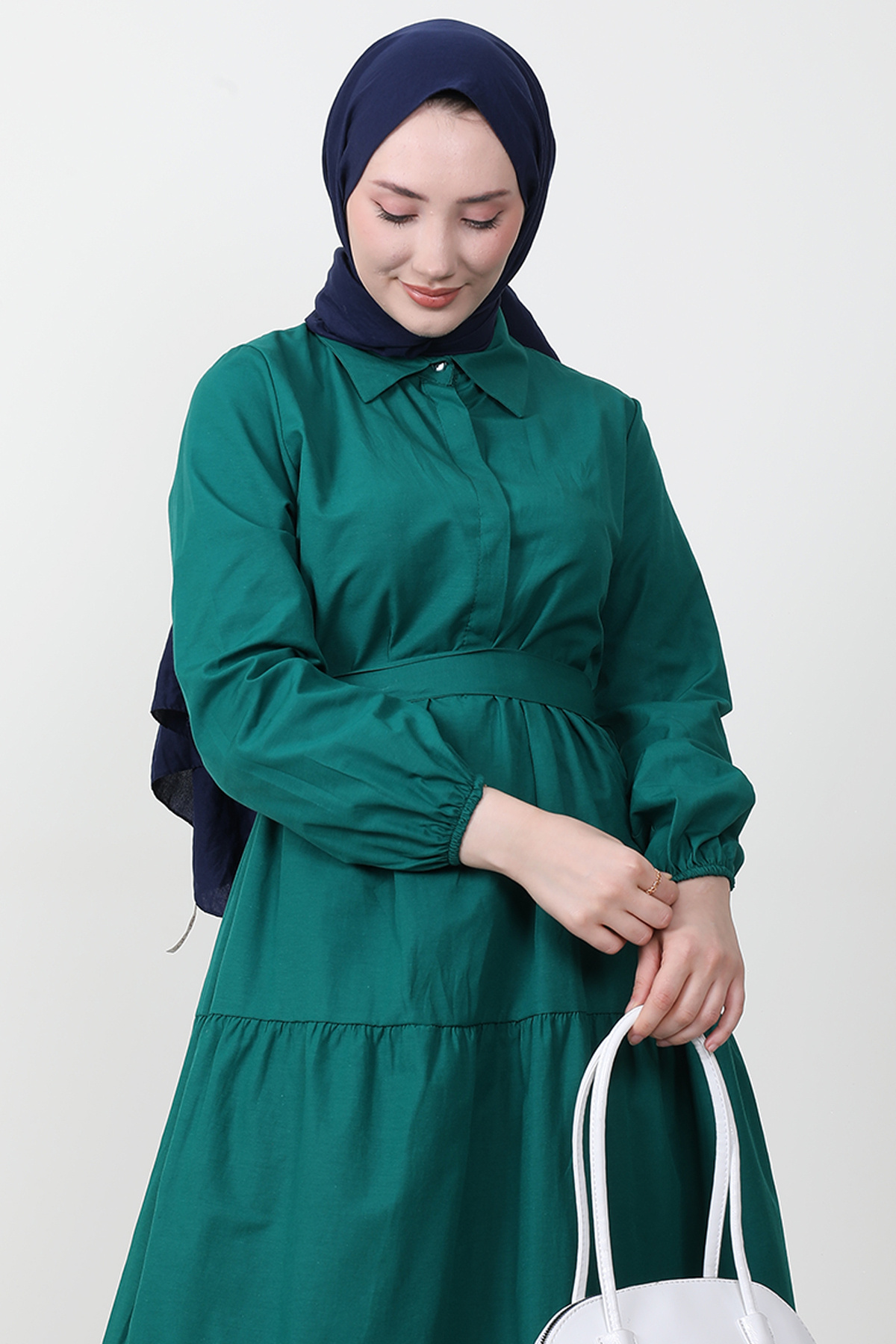 Standart Yaka Düğmeli Elbise Zümrüt Standart Yaka Düğmeli Elbise Zümrüt 2749850 XL