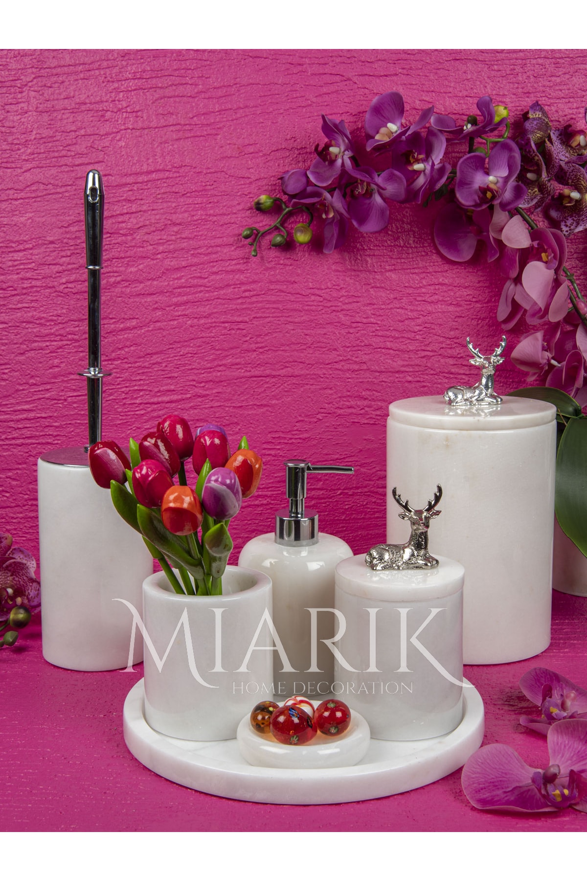Dekoratif Beyaz Mermer Geyik Aksesuar Detaylı 7 Li Banyo Seti Takımı Dekoratif Beyaz Mermer Geyik Aksesuar Detaylı 7 Li Banyo Seti Takımı BEYAZDUZGEYIK7 تک سایز