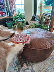 El Yapımı Hakiki Deri Bohem Ottoman Puf Yer Ayak Uzatma Minderi 60x38cm El Yapımı Hakiki Deri Bohem Ottoman Puf Yer Ayak Uzatma Minderi 60x38cm TEKRENKLİMİNDER60CM تک سایز