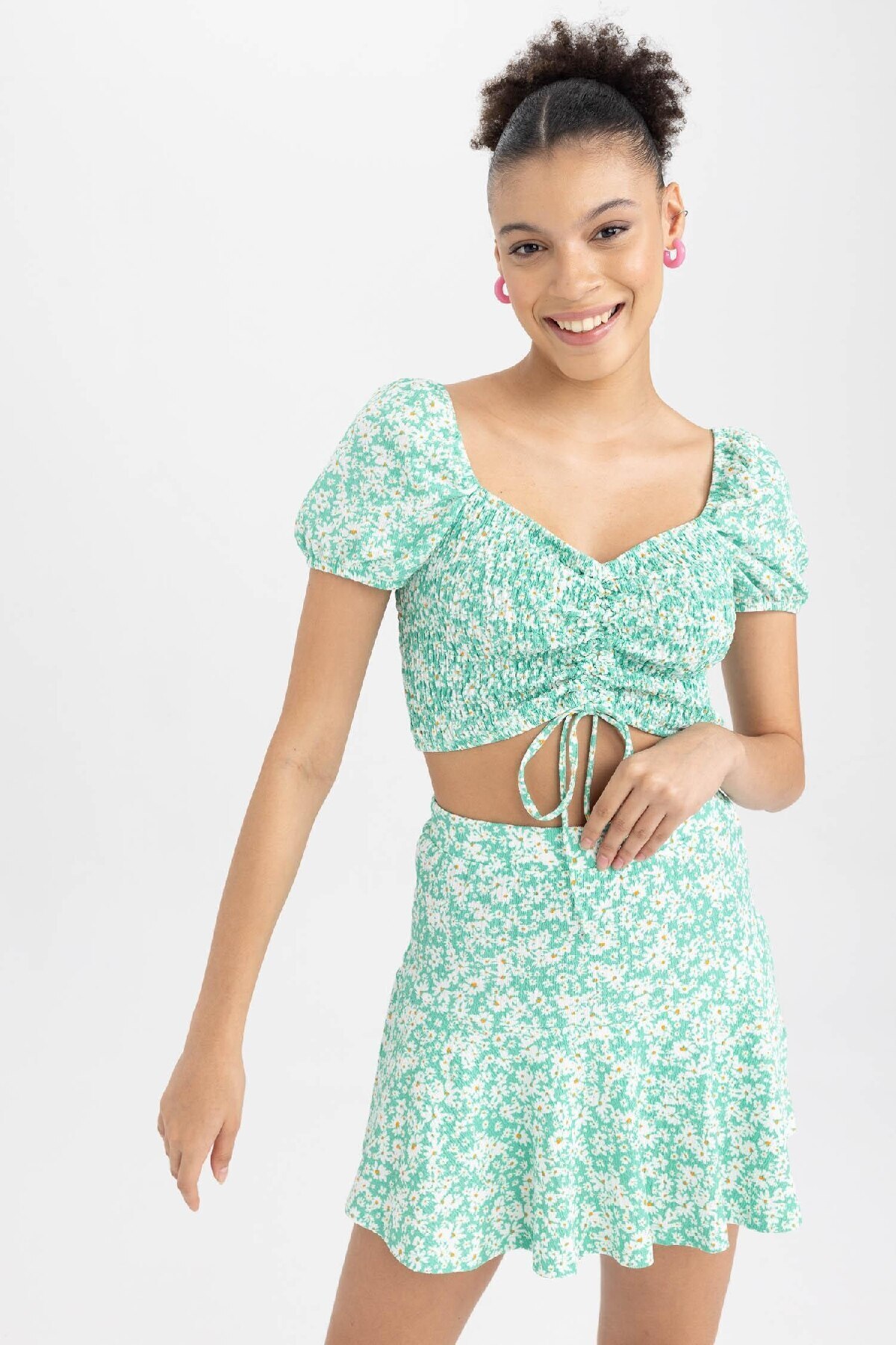 Slim Fit Dar Kesim Crop Desenli Büzgü Detaylı Kısa Kollu Bluz U5234az23sm Slim Fit Dar Kesim Crop Desenli Büzgü Detaylı Kısa Kollu Bluz U5234az23sm U5234AZ23SM XL