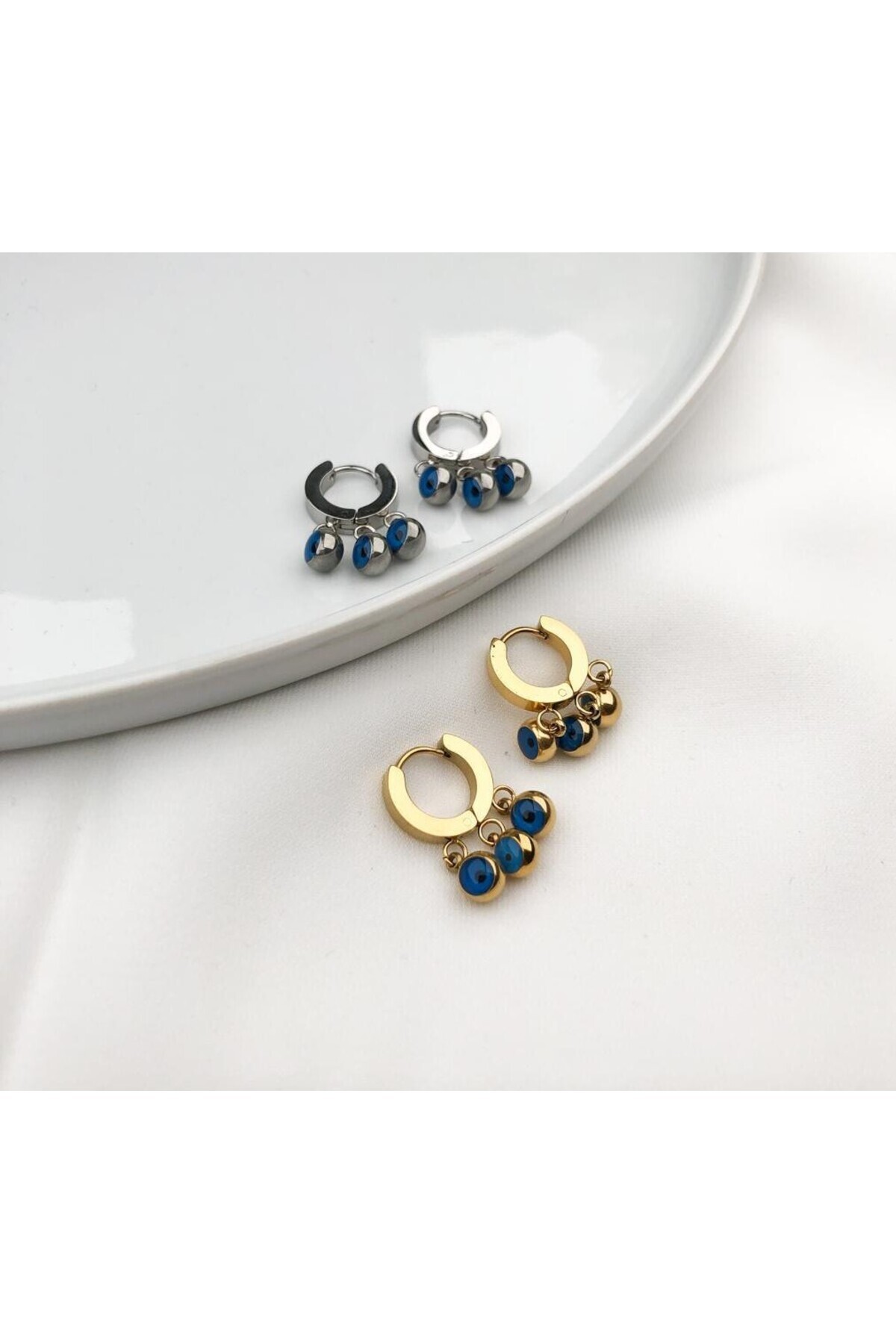 Turkuaz Nazar Boncuklu Kare Telli Roz Gümüş Küpe (TGP0206) Turkuaz Nazar Boncuklu Kare Telli Roz Gümüş Küpe (TGP0206) تک سایز