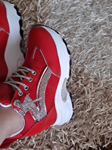 Kadın Gizli Dolgu Topuklu Taşlı Spor Ayakkabı Simli Bağcıklı Kadın Gizli Dolgu Topuklu Taşlı Spor Ayakkabı Simli Bağcıklı 00908 40