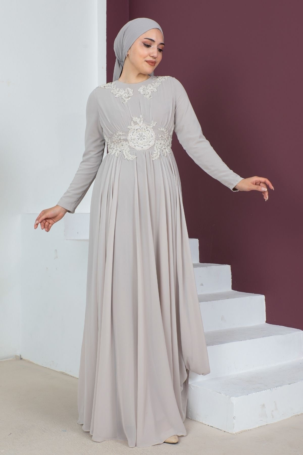 Bel Detaylı Tesettür Abiye Elbise 660-Kırmızı Bel Detaylı Tesettür Abiye Elbise 660-Kırmızı PLD660 44