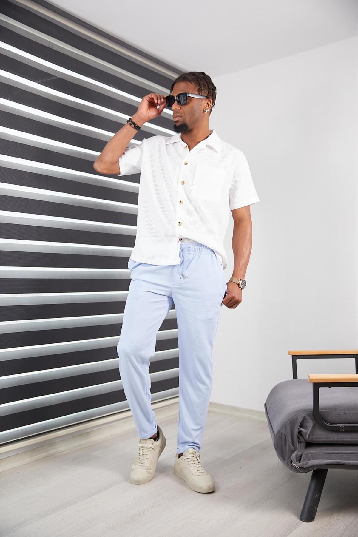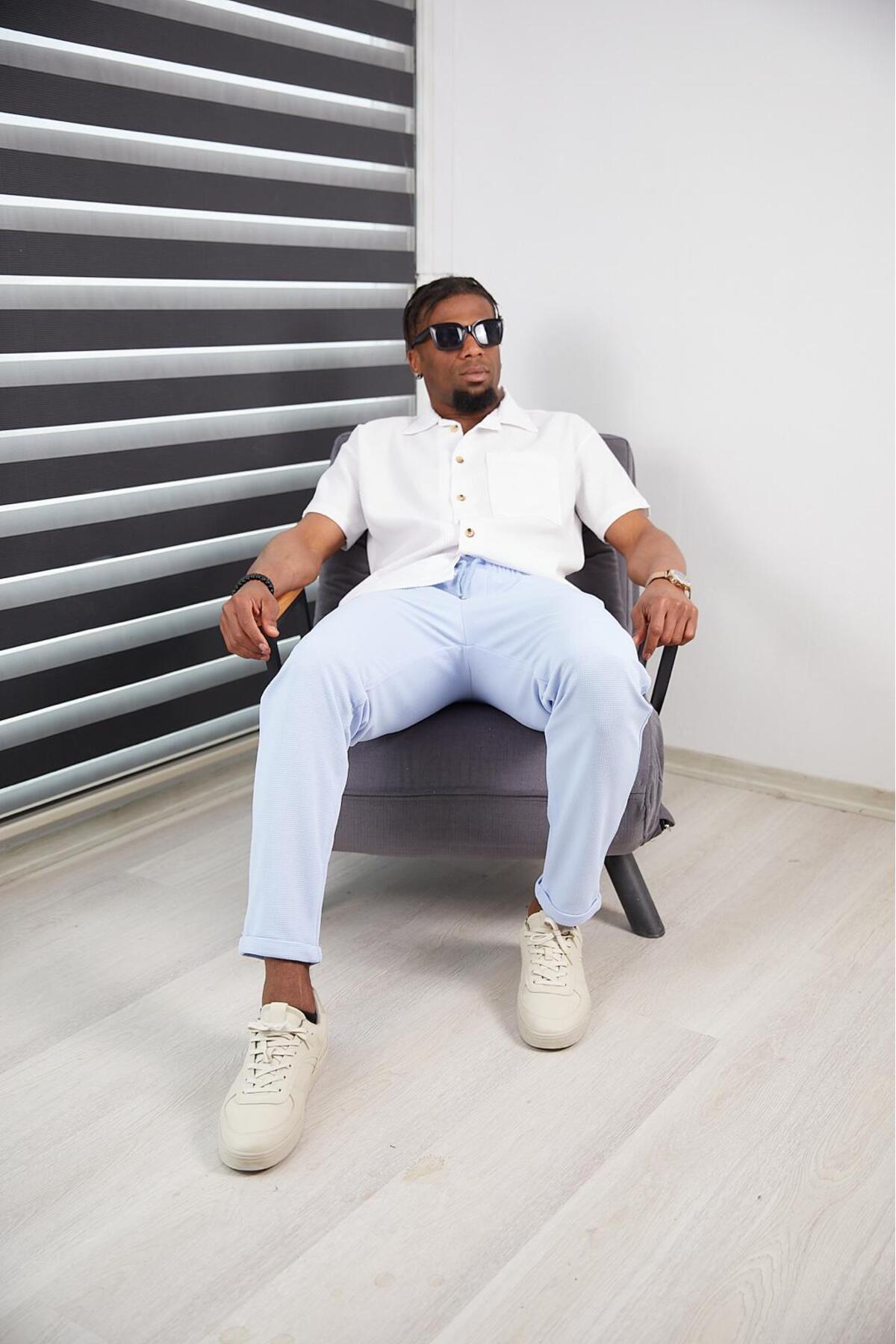 Erkek Slım Fıt Mavi Jogger Pantolon Double Paça Yüksek Kalite Desenli Kumaş Likralı Erkek Slım Fıt Mavi Jogger Pantolon Double Paça Yüksek Kalite Desenli Kumaş Likralı JCK-1000-110 2XL