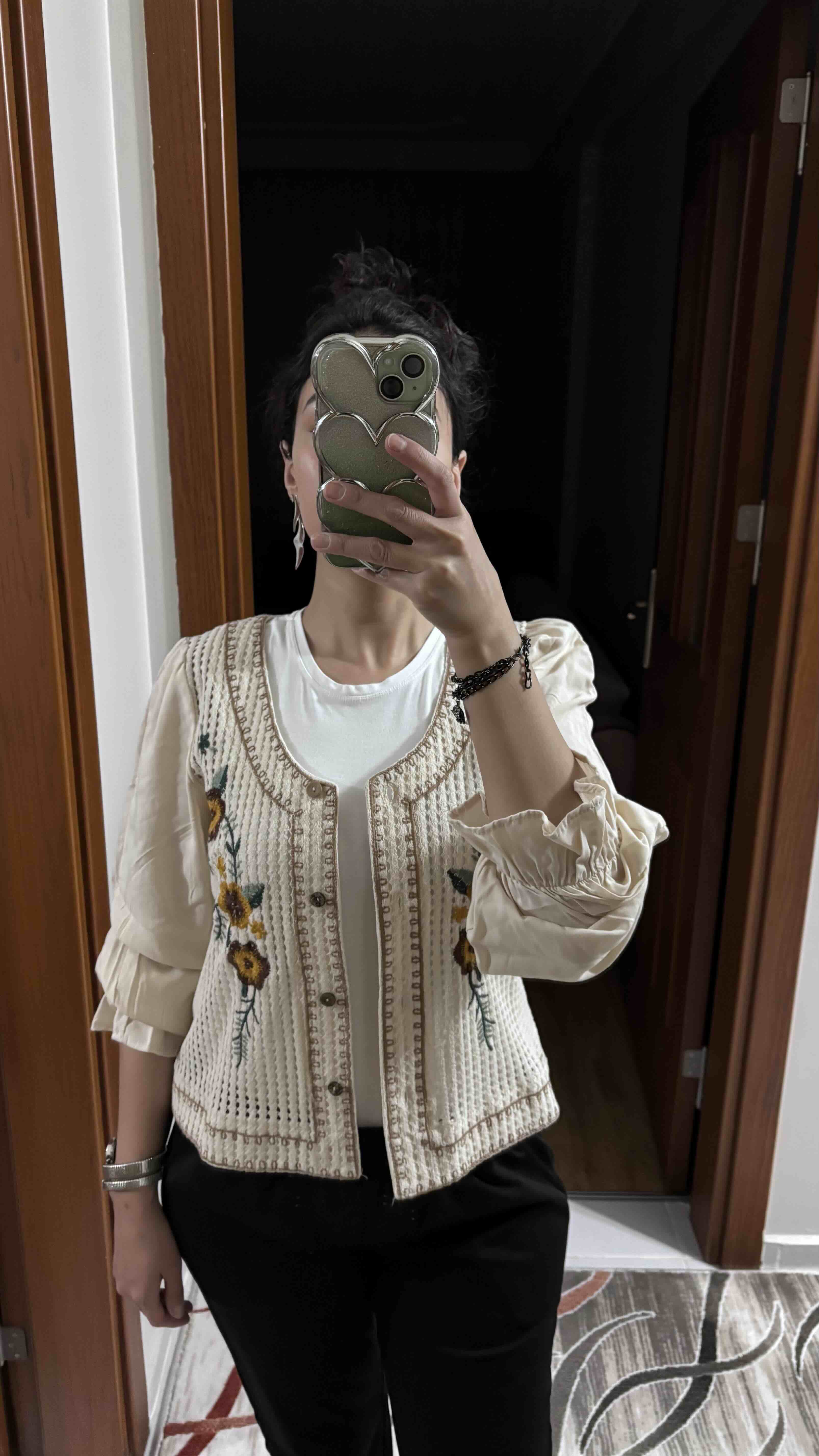 Hardal Nakışlı Delikli Ekru Gömlek Hardal Nakışlı Delikli Ekru Gömlek 5327 L