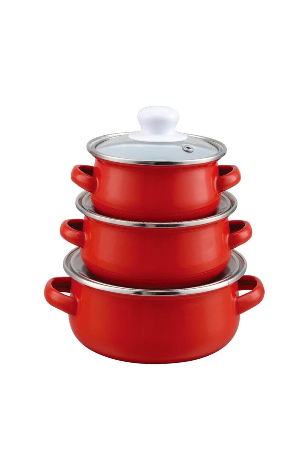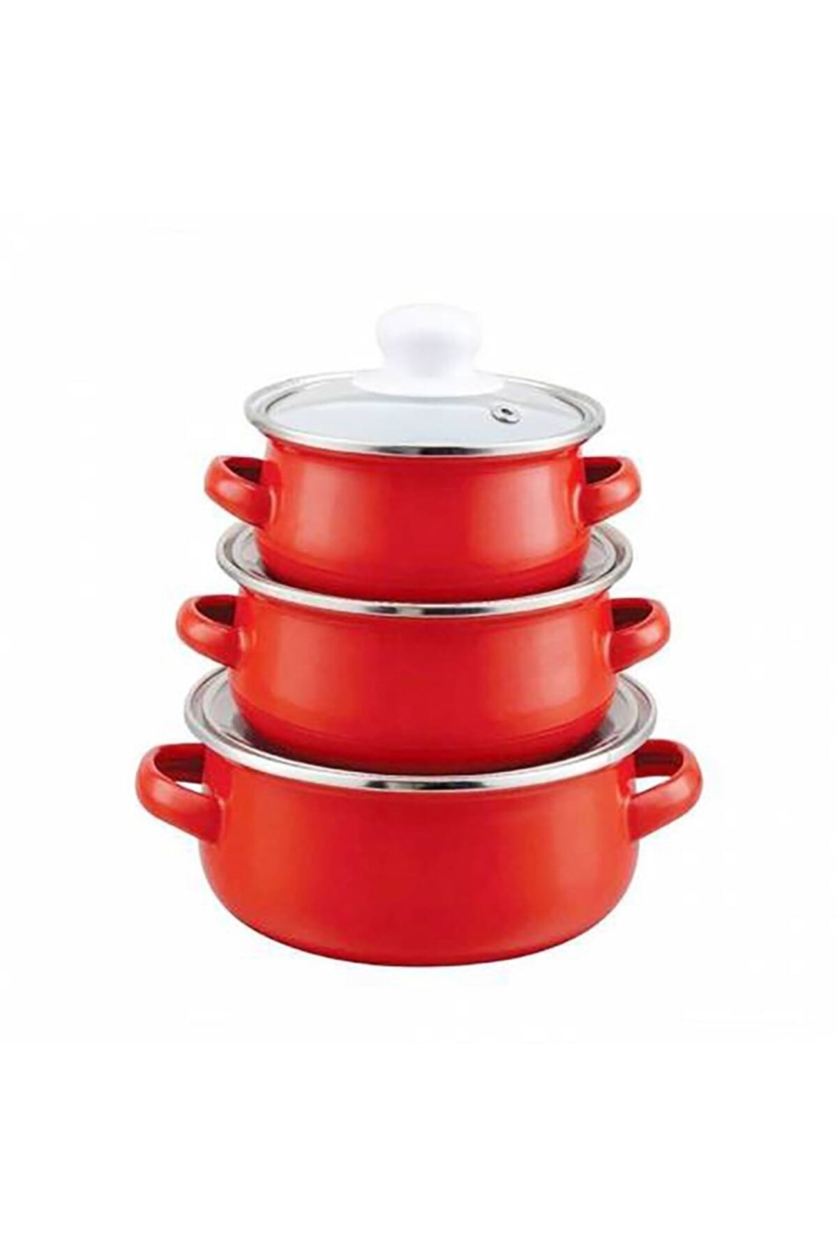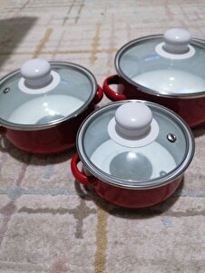 Emaye Mini 3'lü Tencere Seti (12-14-16 CM)-kırmızı Renk------------------ Emaye Mini 3'lü Tencere Seti (12-14-16 CM)-kırmızı Renk------------------ 121416 تک سایز
