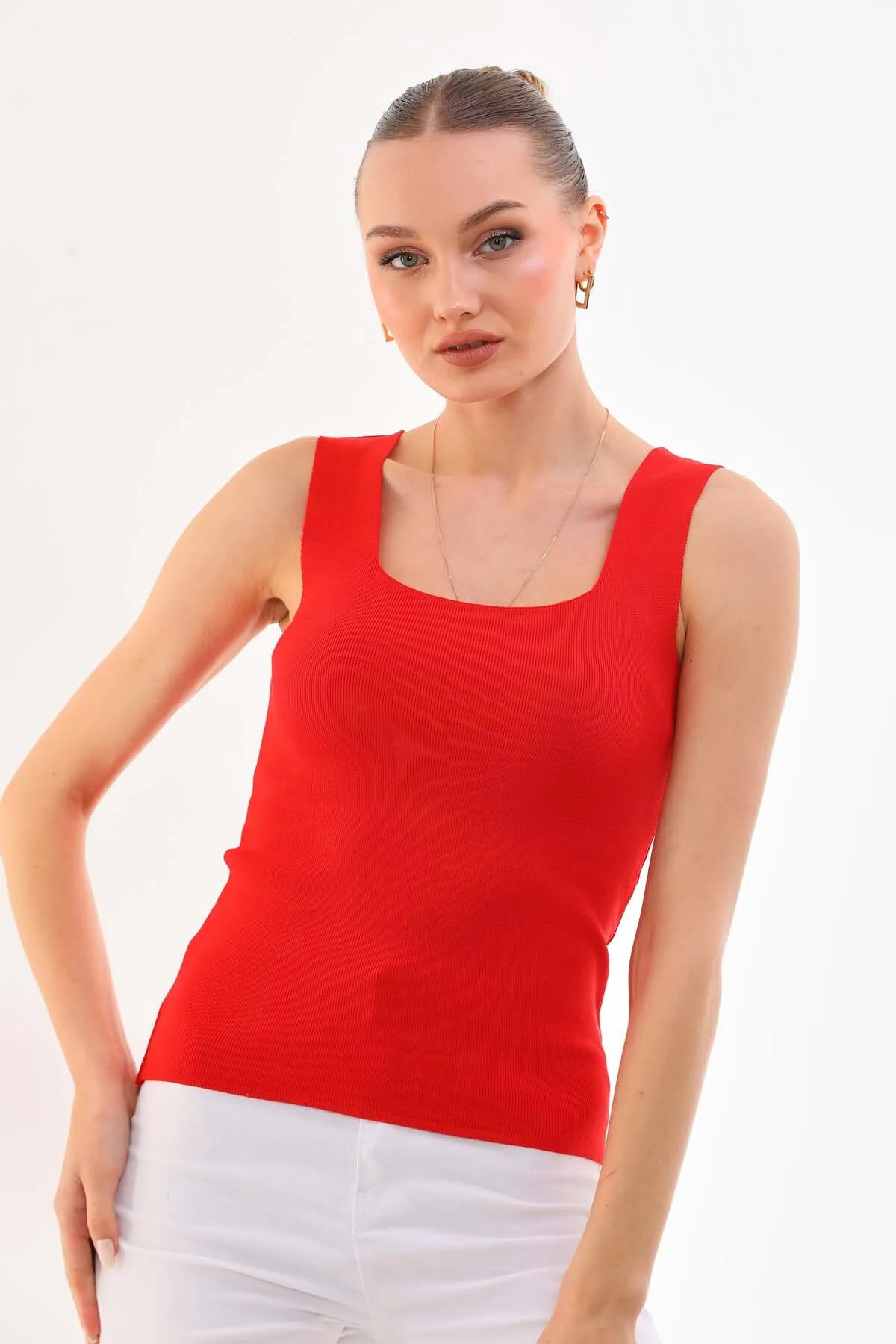 Kırmızı Fitted/vücuda Oturan Kalın Askılı U Yaka Fitilli Esnek Örme Bluz Kırmızı Fitted/vücuda Oturan Kalın Askılı U Yaka Fitilli Esnek Örme Bluz KalınAskılıBluz XL