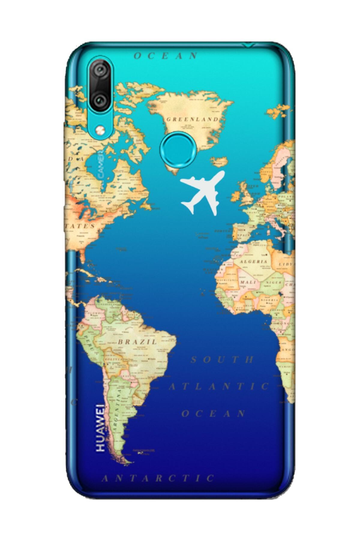 Huawei Y7 2019 Dünya Haritalı Siyah Telefon Kılıfı Huawei Y7 2019 Dünya Haritalı Siyah Telefon Kılıfı hw-y72019-mdrn13 تک سایز