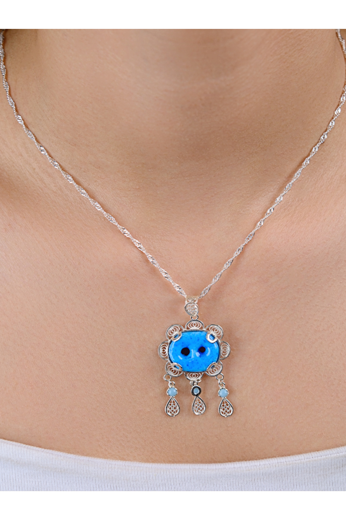 925 Ayar Gümüş/rose/altın Kaplamalı Süryani Nazar Boncuğu Firuze Taşlı Kadın Kolye 925 Ayar Gümüş/rose/altın Kaplamalı Süryani Nazar Boncuğu Firuze Taşlı Kadın Kolye KKZ034 تک سایز
