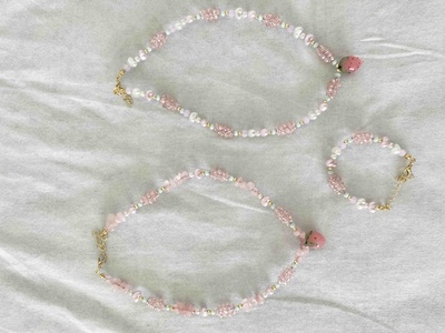 Pembe Murano Çilek Uçlu Pembe Kuvars Doğaltaşlı Üzüm Kolye Pembe Murano Çilek Uçlu Pembe Kuvars Doğaltaşlı Üzüm Kolye FMA1031 40 cm