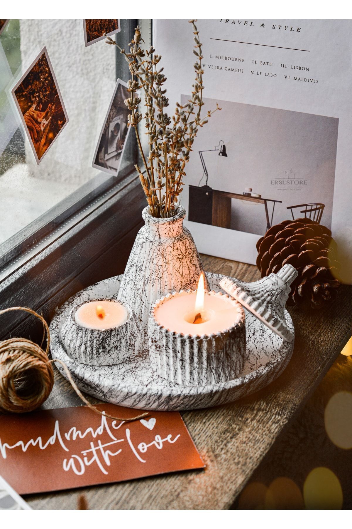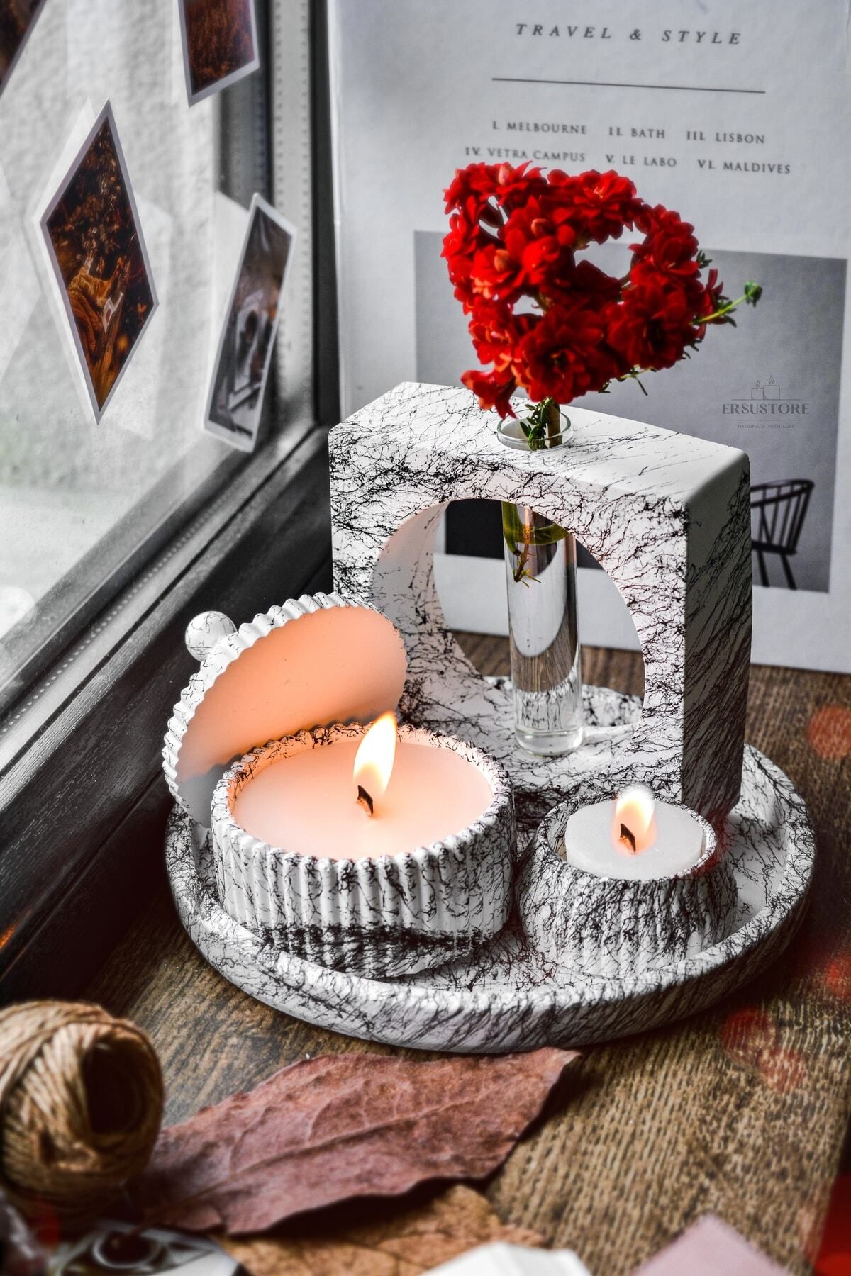 5 Parça Mermer Desen Dekoratif Beton Vazo Ve Vanilya Kokulu Soya Wax Mumluk Takımı 5 Parça Mermer Desen Dekoratif Beton Vazo Ve Vanilya Kokulu Soya Wax Mumluk Takımı Kokulu Şık Tasarım Set2 تک سایز
