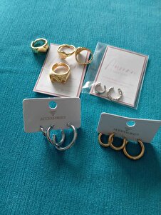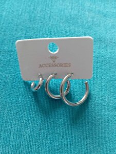 Kadın Gümüş Renk 3'lü Halka Set Küpe Kadın Gümüş Renk 3'lü Halka Set Küpe 3LUKUPE-03 تک سایز