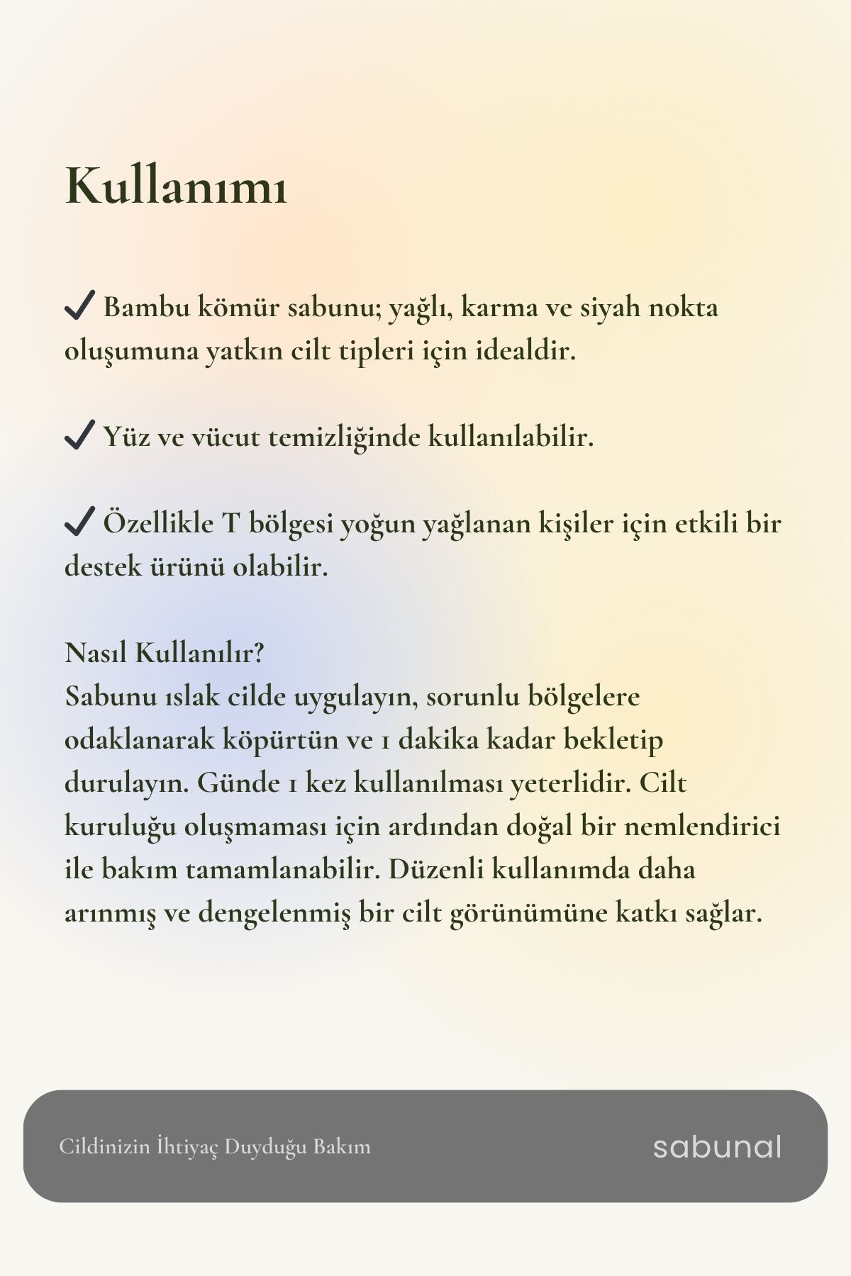مشخصات فنی Bambu Kömür Sabunu - Siyah Nokta ve Cilt Temizleyici Doğal Sabun 100 gr Diğer Özellikler Soğuk proses üretim Menşei TR Ürün Güvenliği Bilgisi Tehlikeli Değil مشخصات کلی
