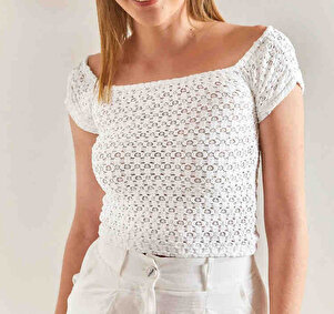 Kadın Madonna Yaka Desenli Bluz Kadın Madonna Yaka Desenli Bluz 40871010 L