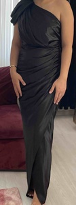 Siyah Tek Omuz Uzun Saten Abiye Elbise Siyah Tek Omuz Uzun Saten Abiye Elbise 2255 42
