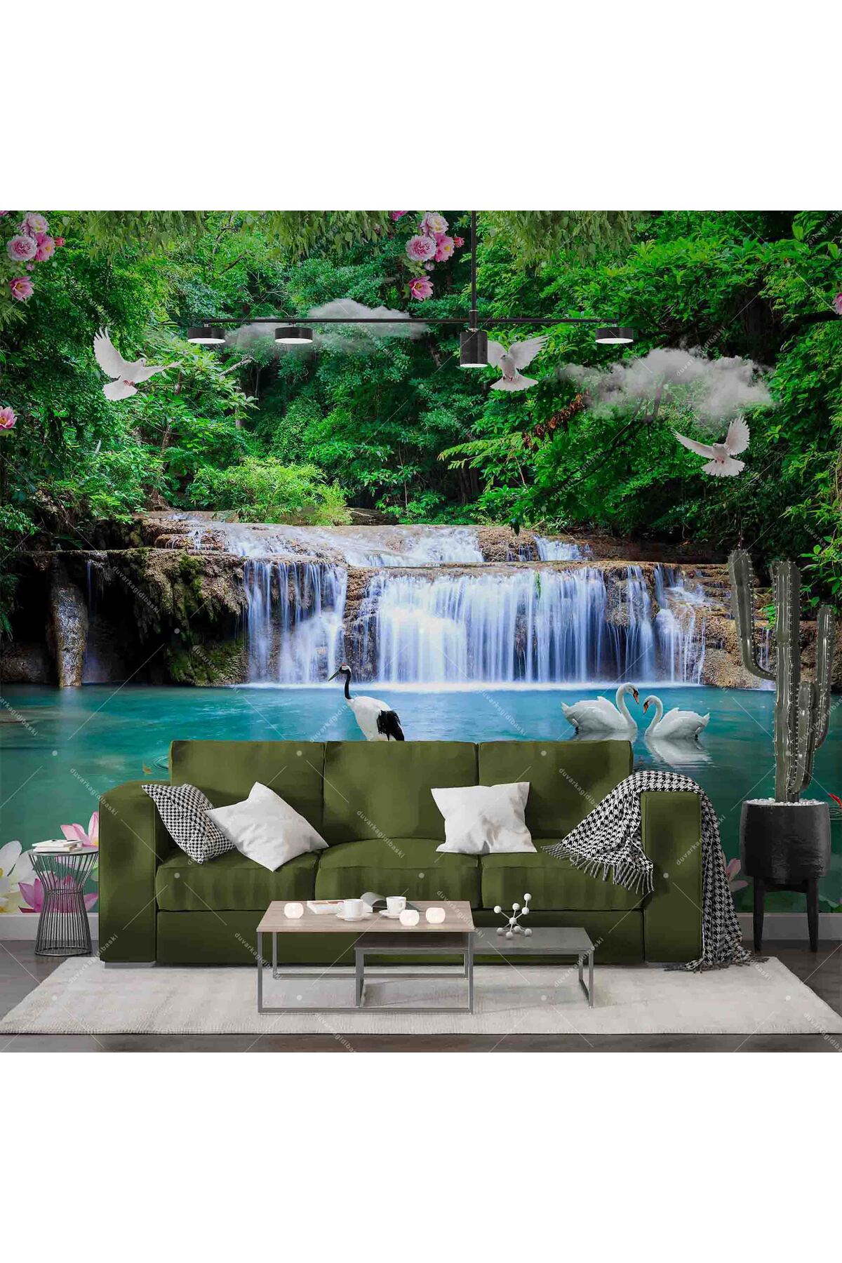 Manzara Duvar Kağıdı,şelale Duvar Kağıdı,orman,hayvanlar,kuşlar,tek Parça Poster Duvar Kağıdı Manzara Duvar Kağıdı,şelale Duvar Kağıdı,orman,hayvanlar,kuşlar,tek Parça Poster Duvar Kağıdı 1654-2023DW 450 x 240
