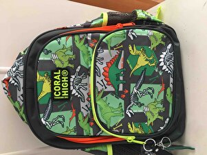 Kids Gri Yeşil Dinozor Desenli Üç Bölmeli Okul Sırt Çantası 14419 Kids Gri Yeşil Dinozor Desenli Üç Bölmeli Okul Sırt Çantası 14419 K33 تک سایز