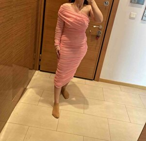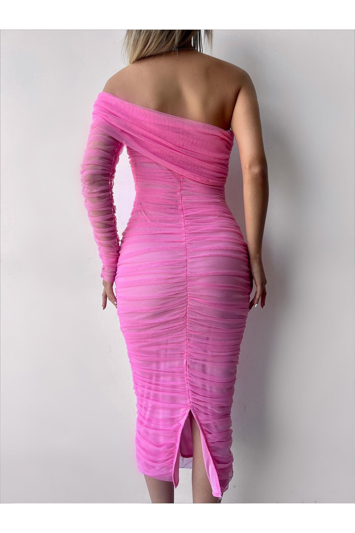 Tek Kollu Midi Boy Tül Elbise Tek Kollu Midi Boy Tül Elbise 4701 L