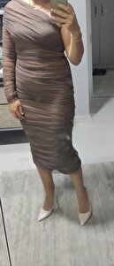 Tek Kollu Midi Boy Tül Elbise Tek Kollu Midi Boy Tül Elbise 4701 L