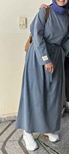 Oversıze Uzun Rahat Elbise Mavi Oversıze Uzun Rahat Elbise Mavi M-3204-22 M